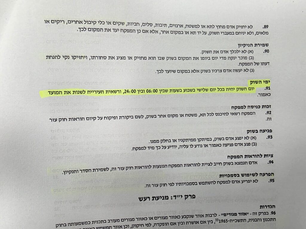 עם זאת, ראש העיר הנחה לבצע הסדרה מלאה של היבטי הבטיחות בשוק יום שישי, לרבות טיפול בתשתיות חשמל, סידור בלוני הגז והבטחת מעבר בטוח לציבור המבקרים.